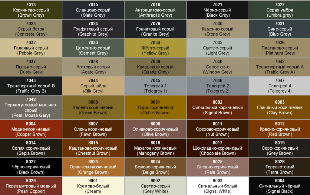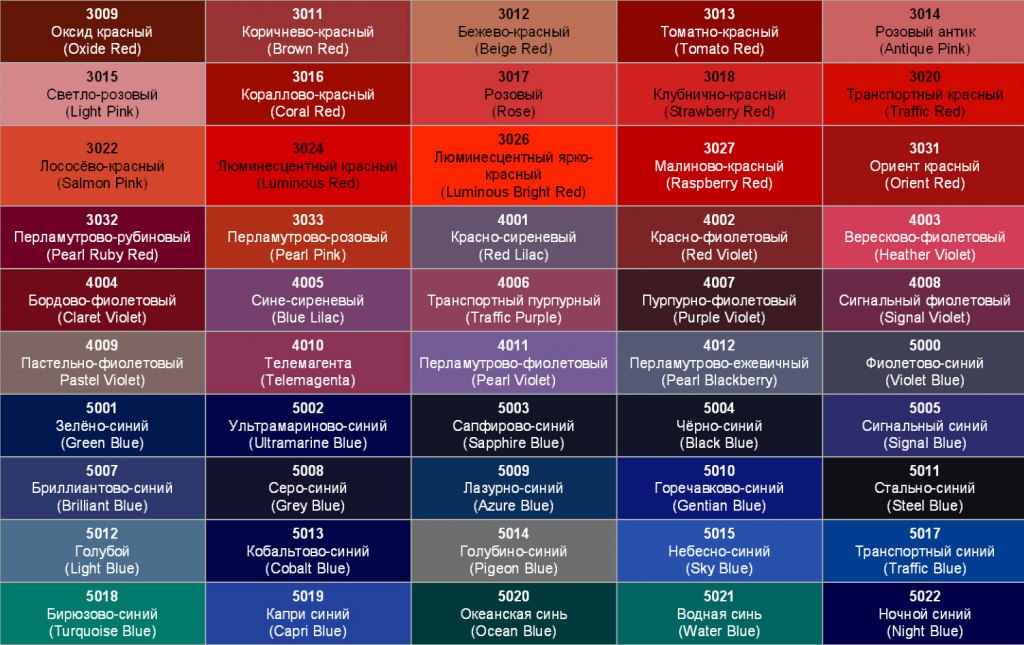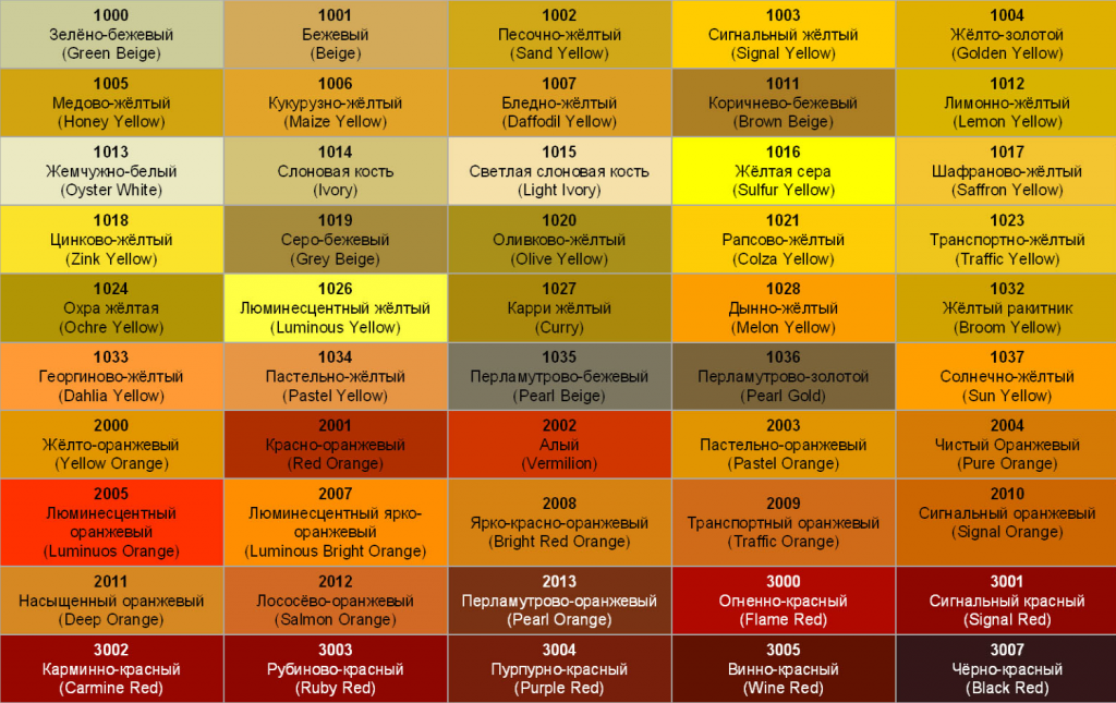 Colors according to RAL