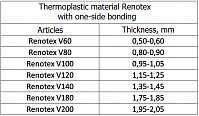 Thermoplastic material used to produce the toe parts of a shoe, where the glue layer is applied on one side. Its basis is needle perforated non-woven material, which is able to take a different shape under the influence of temperature. RENOTEX "V" can be used for the production of not only model and children shoes, but also for the production of military, work and special shoes.