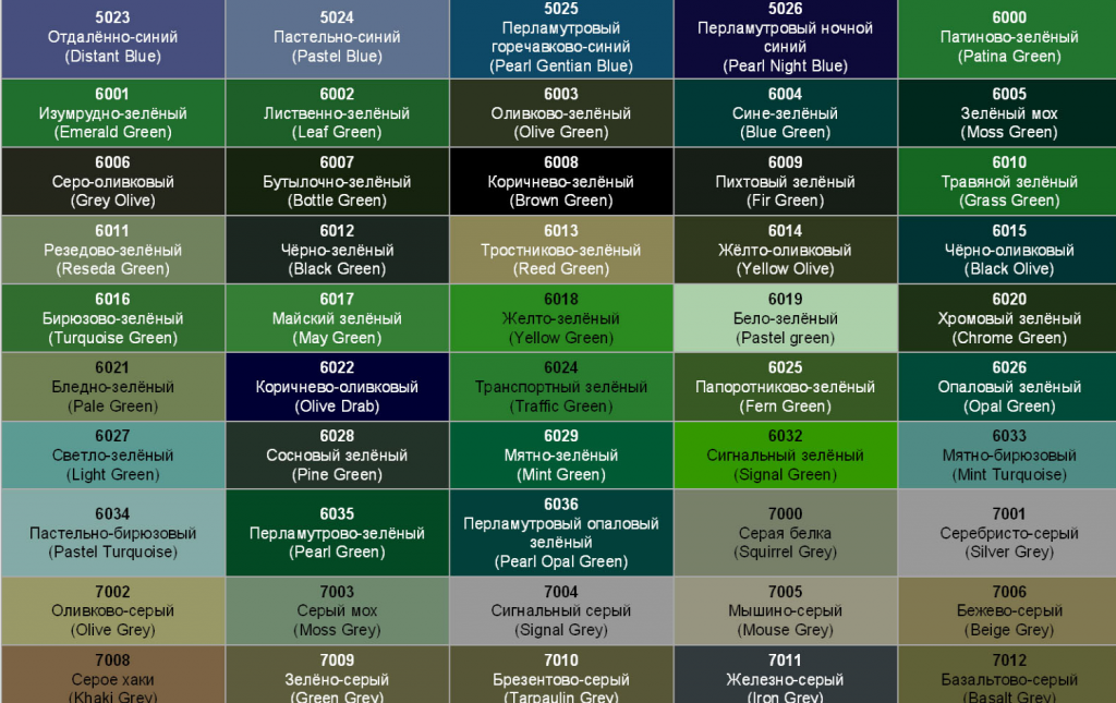 Colors according to RAL